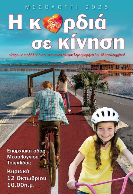 Η Ποδηλατάδα θα αναπτυχθεί στις 10:00 το πρωί, στον Δρόμο Τουρλίδας (επαρχιακή οδός Μεσολογγίου-Τουρλίδας) στο Μεσολόγγι και πρόκειται για μία μοναδική ποδηλατική δράση, αθλητική γιορτή και εμπειρία που συνδυάζει άθληση, υγεία και αναδεικνύει την ομορφιά του Μεσολογγίου!!