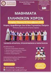 Έναρξη μαθημάτων Χορού 2025-2026 στον Σύλλογο Ελληνικών Παραδοσιακών Χορών Πανεπιστημίου Πατρών (Σ.Ε.Π.Χ.Π.Π.) | 02.10.2025