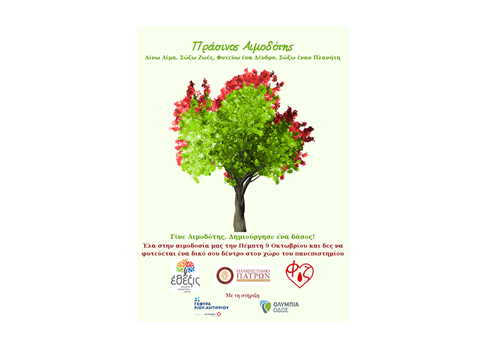 - Οι φοιτητές και οι αιμοδότες θα έχουν την ευκαιρία να «υιοθετήσουν» δέντρα, αναλαμβάνοντας την ευθύνη για τη φροντίδα τους στο μέλλον