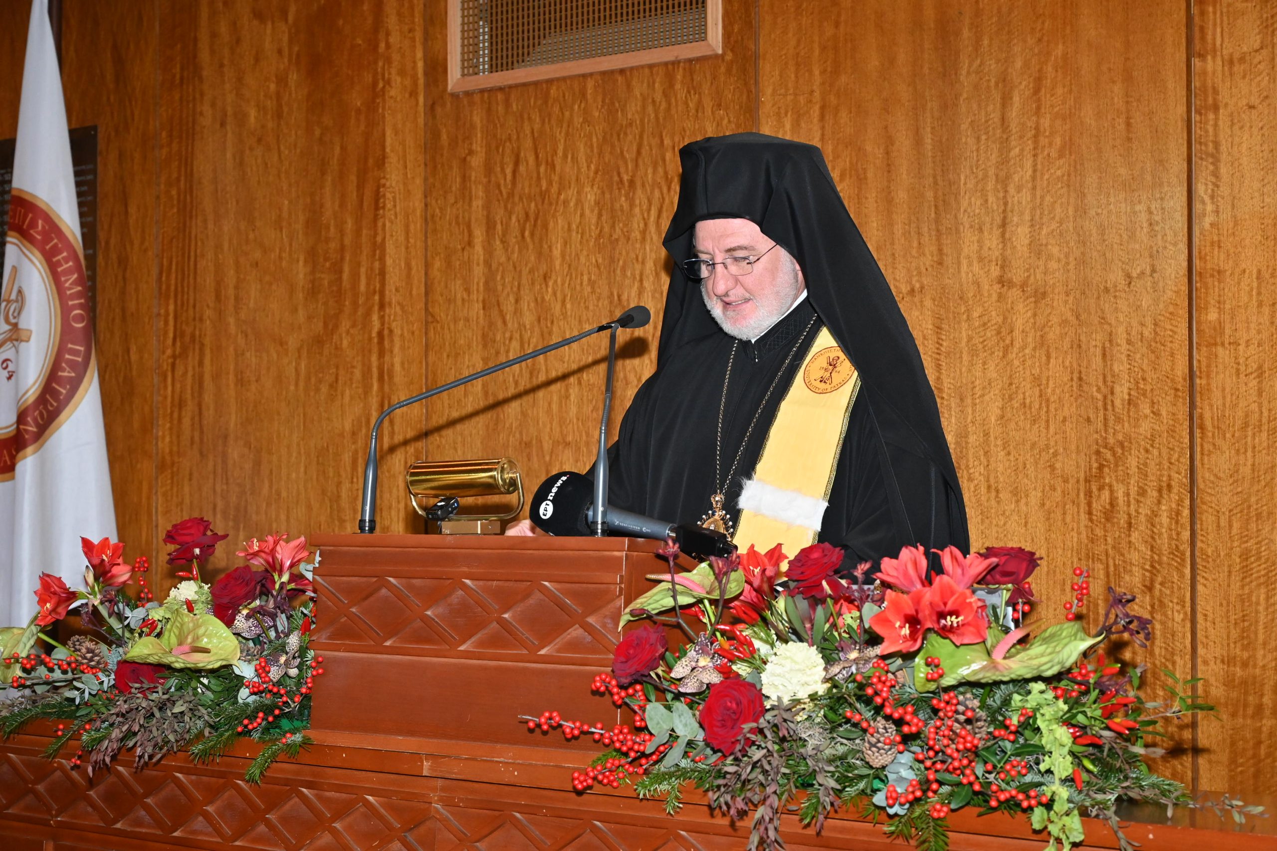 Ο Σεβασμιώτατος ξεκίνησε την ομιλία του ευχαριστώντας το Πανεπιστήμιο Πατρών: