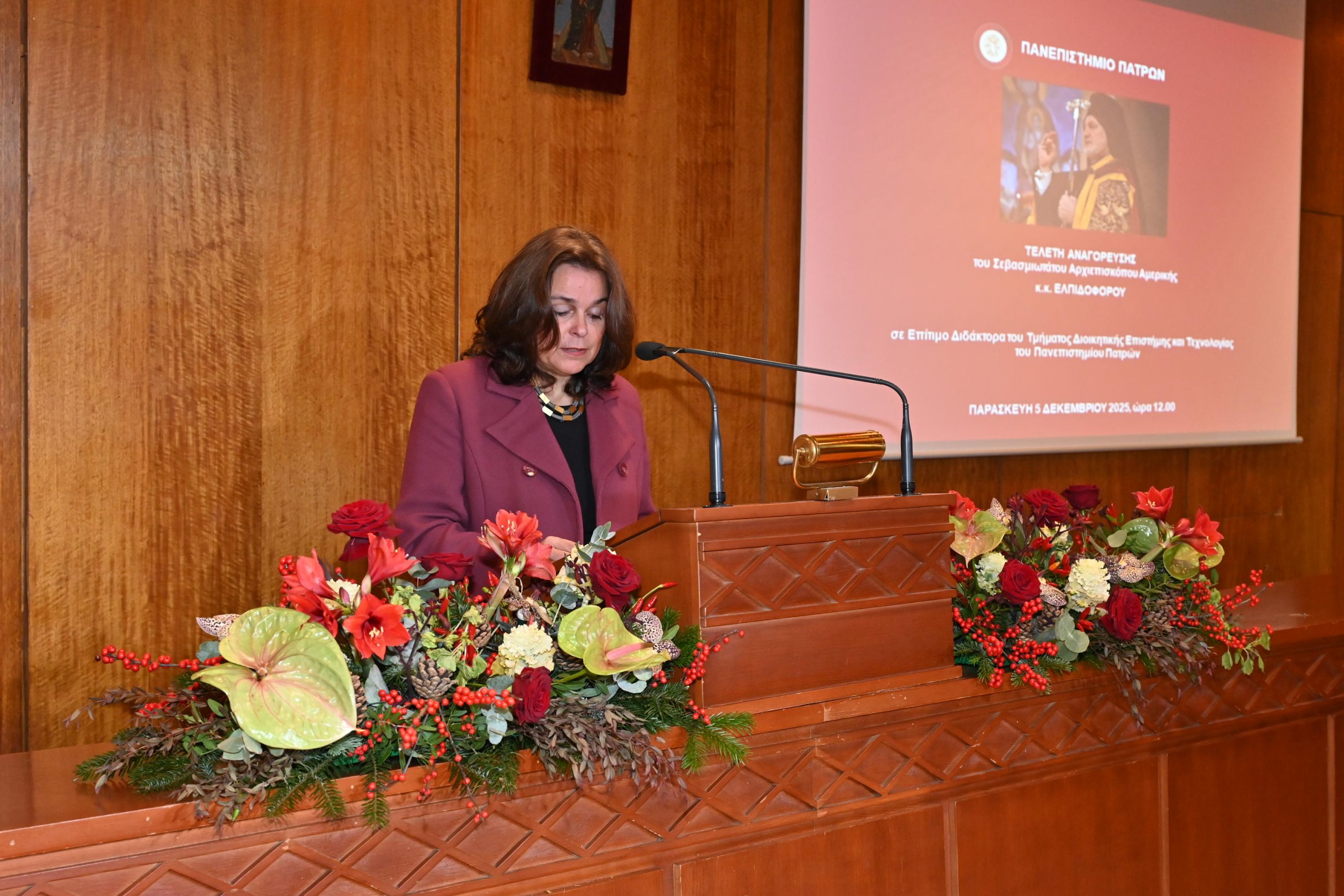 Στην κατάμεστη Αίθουσα Τελετών «Οδυσσέας Ελύτης» του Πανεπιστημίου Πατρών πραγματοποιήθηκε την Παρασκευή 5 Δεκεμβρίου 2025, η τελετή αναγόρευσης του Σεβασμιωτάτου Αρχιεπισκόπου Αμερικής κ.κ. Ελπιδοφόρου σε Επίτιμο Διδάκτορα του Τμήματος Διοικητικής Επιστήμης και Τεχνολογίας. Η εκδήλωση αποτέλεσε κορυφαία ακαδημαϊκή στιγμή για την πανεπιστημιακή κοινότητα, καθώς αναγνωρίστηκε η πνευματική, κοινωνική και επιστημονική συμβολή του τιμώμενου ιεράρχη.
