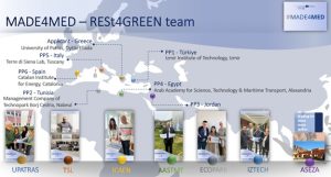 Ως συντονιστής εταίρος, το Πανεπιστήμιο Πατρών, με Επιστημ. Υπεύθυνο τον κ. Γεώργιο Στεφανίδη, Ομότιμο Καθηγητή του Τμήματος Πολιτικών Μηχανικών, ηγείται μιας κοινοπραξίας επτά εταίρων από επτά χώρες: τρεις χώρες της Ε.Ε. (Ελλάς, Ισπανία, Ιταλία) και τέσσερις χώρες της ευρύτερης Μεσογείου (Τυνησία, Ιορδανία, Τουρκία, Αίγυπτος). Σημαντική είναι η συμβολή έξι Συνδεδεμένων Εταίρων, οι οποίοι θα συνεργάζονται στενά με την κοινοπραξία, μεταξύ αυτών και η Περιφέρεια Δυτικής Ελλάδος, ενισχύοντας τον τοπικό και διακρατικό αντίκτυπο του έργου.