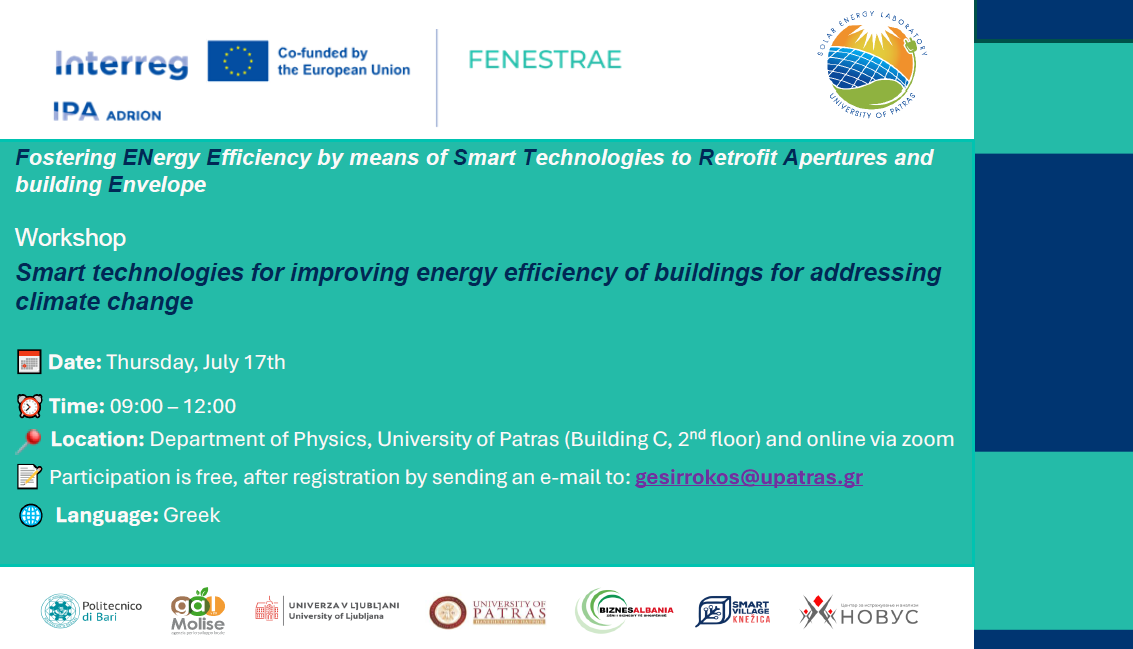 Fostering ENergy Efficiency by means of Smart Technologies to Retrofit Apertures and building Envelope (FENESTRAE-IPA ADRION, Interreg)